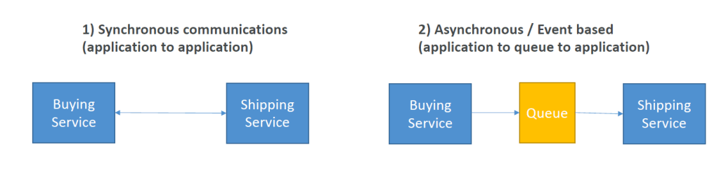 - Synchronous between applications can be problematic if there are sudden spikes of traffic