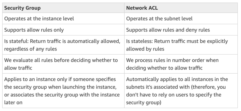 - • Security Groups, Network ACL (NACL), VPC Flow Logs
