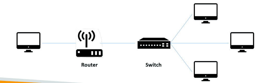 - Switch: Takes a packet and send it to the correct server / client on your network. Its kind of Last mile connector.