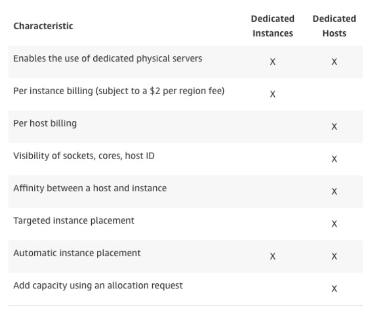 - Dedicated Hosts: book an entire physical server, control instance placement