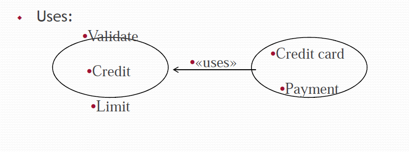- «uses» stereotype indicates that one use case is precondition for executing another use case