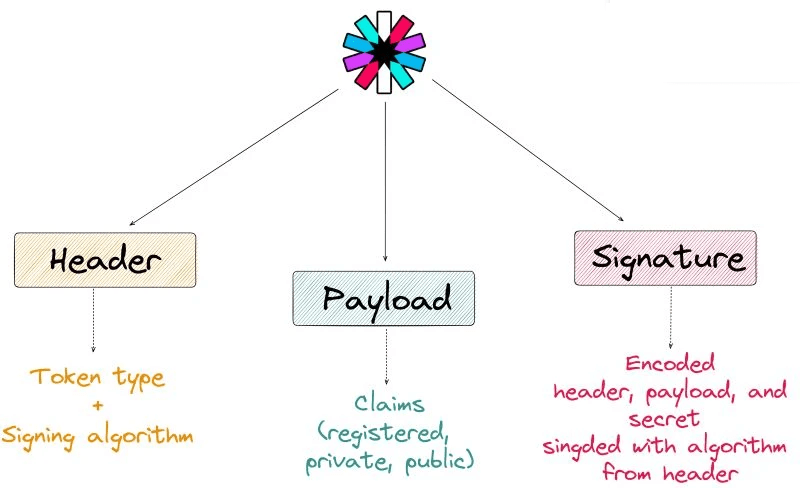 - 𝗦𝗶𝗴𝗻𝗮𝘁𝘂𝗿𝗲: It ensures that the token hasn’t been altered. JWT is signed with the algorithm from a header, and the signature consists of an encoded header and payload, and secret.