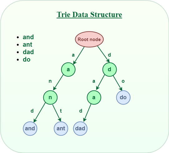 - It is optimised for retrieval where string have common prefix which are store on common nodes.