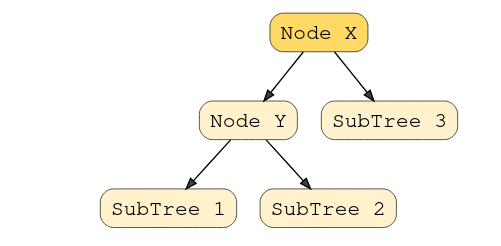 In this example, the node Y is a parent node with two child nodes. All nodes in subtree 1 must have a value less than node Y, and subtree 2 must have a greater value than node Y.